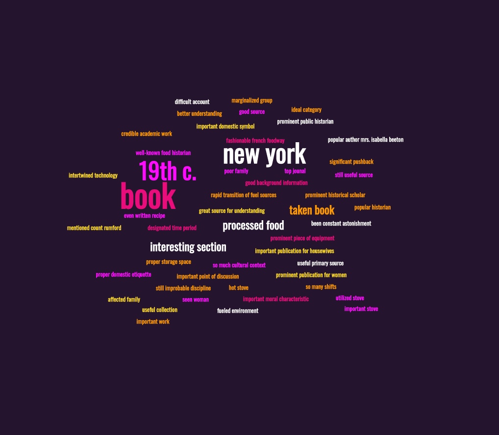 Second, I would then examine reviews like the AHR Digital Exchanges and see what the common concerns were. I would then attempt to plot the data through a sort of topic modeling like Word Clouds to see how common the concerns of reviewers were throughout these projects. This could be broken up according to micro or macro histories if necessary since many word cloud models have limits to what they can process. As an example, here is a WordCloud I generated using one of my annotated bibliographies from another class.